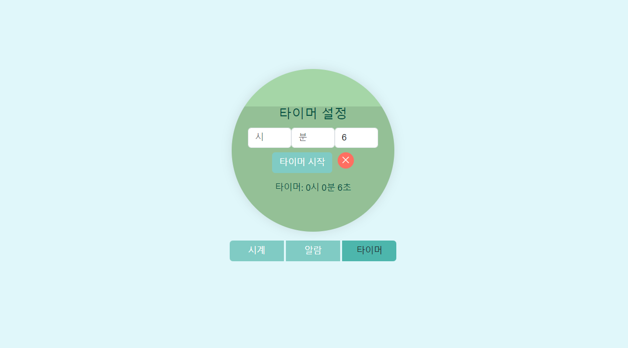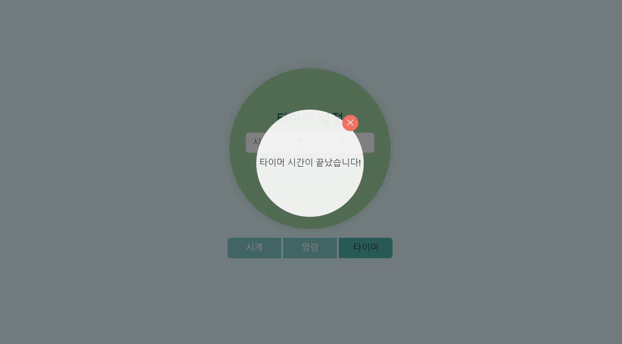 (6) 타이머 종료화면 (알람소리까지 재생됨)