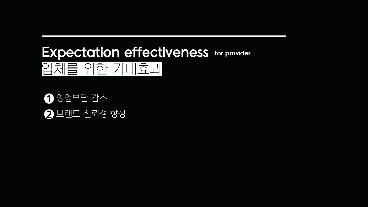 -업체 기대효과입니다. 첫번째로 영업 부담 감소 입니다 플랫폼을 통해 자연스럽게 고객을 유치할 수 있어, 영업에 소요되는 비용과 노력을 절감할 수 있습니다.