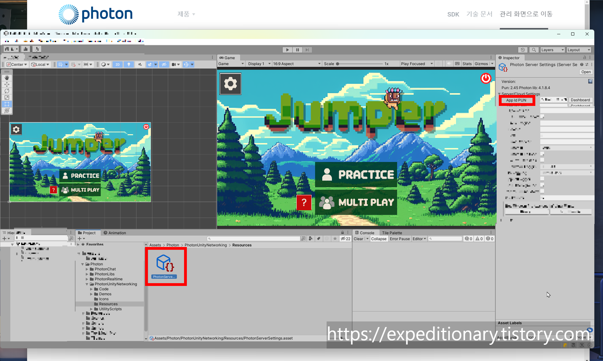 (11) Resource Server Settings 파일 선택 후 App Id PUN 부분에 복사해 둔 ID 붙여 넣기.