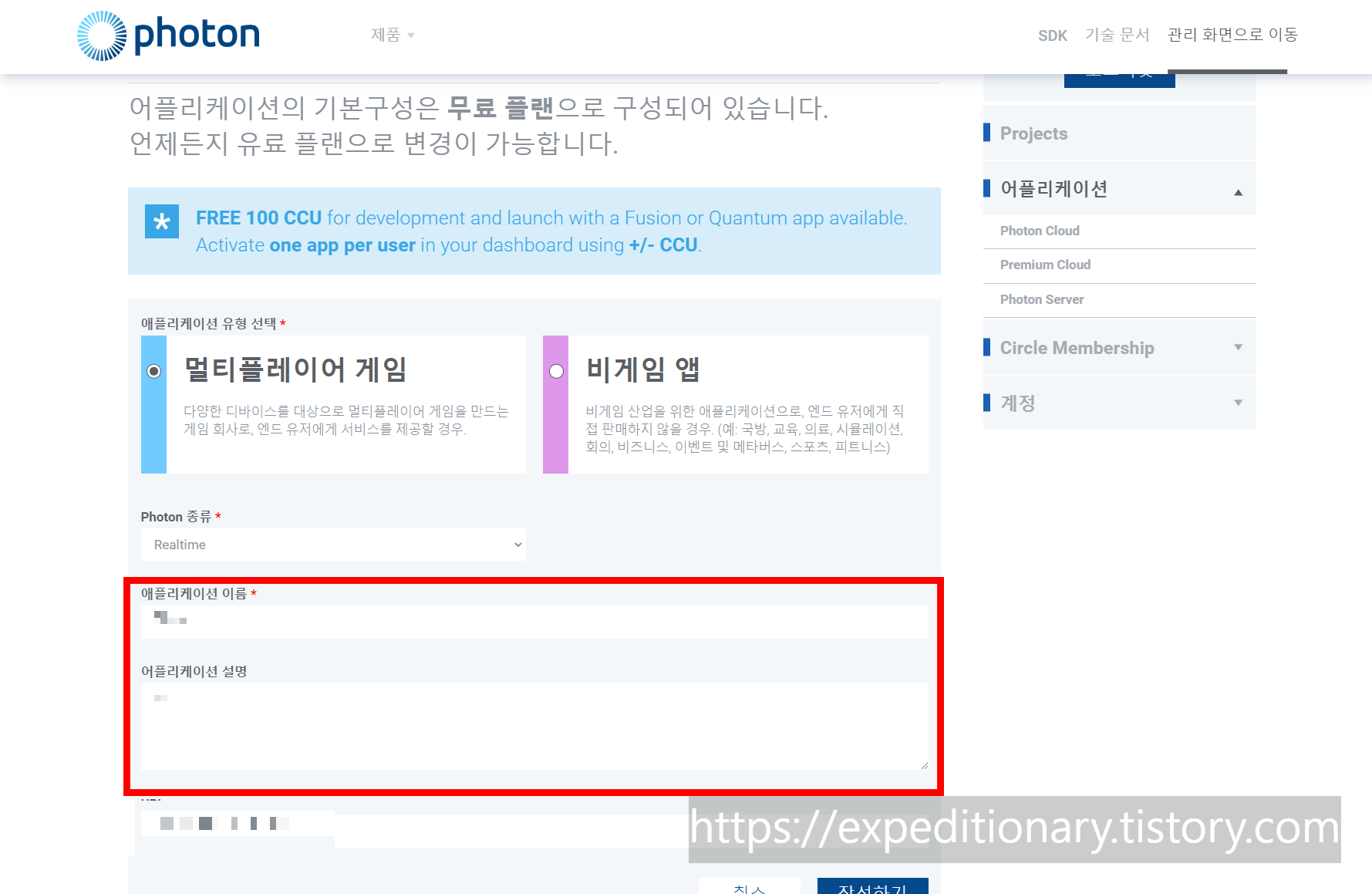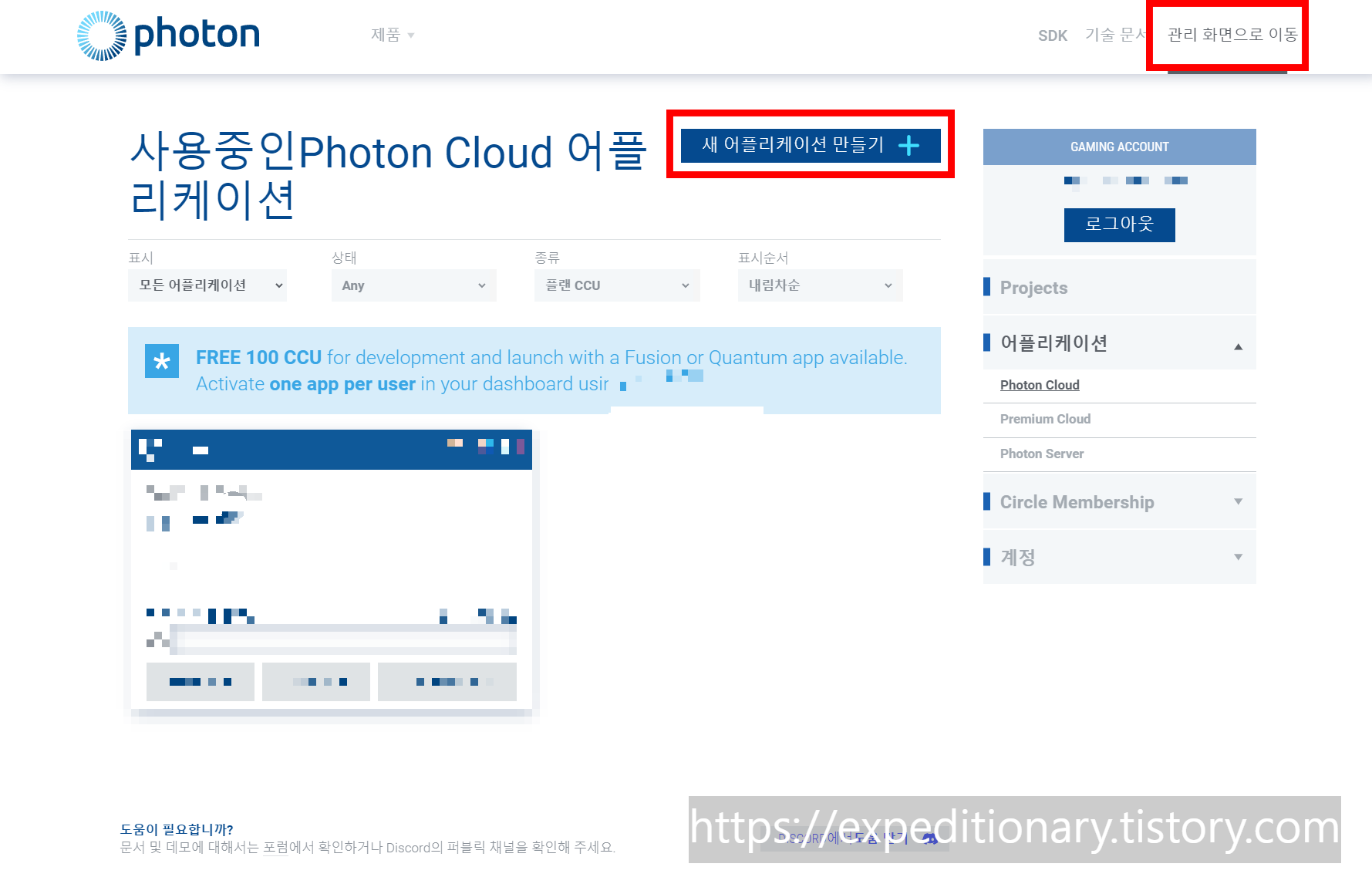(2) 회원가입 진행 후 관리 화면으로 이동 후 새 어플리케이션 만들기 클릭.