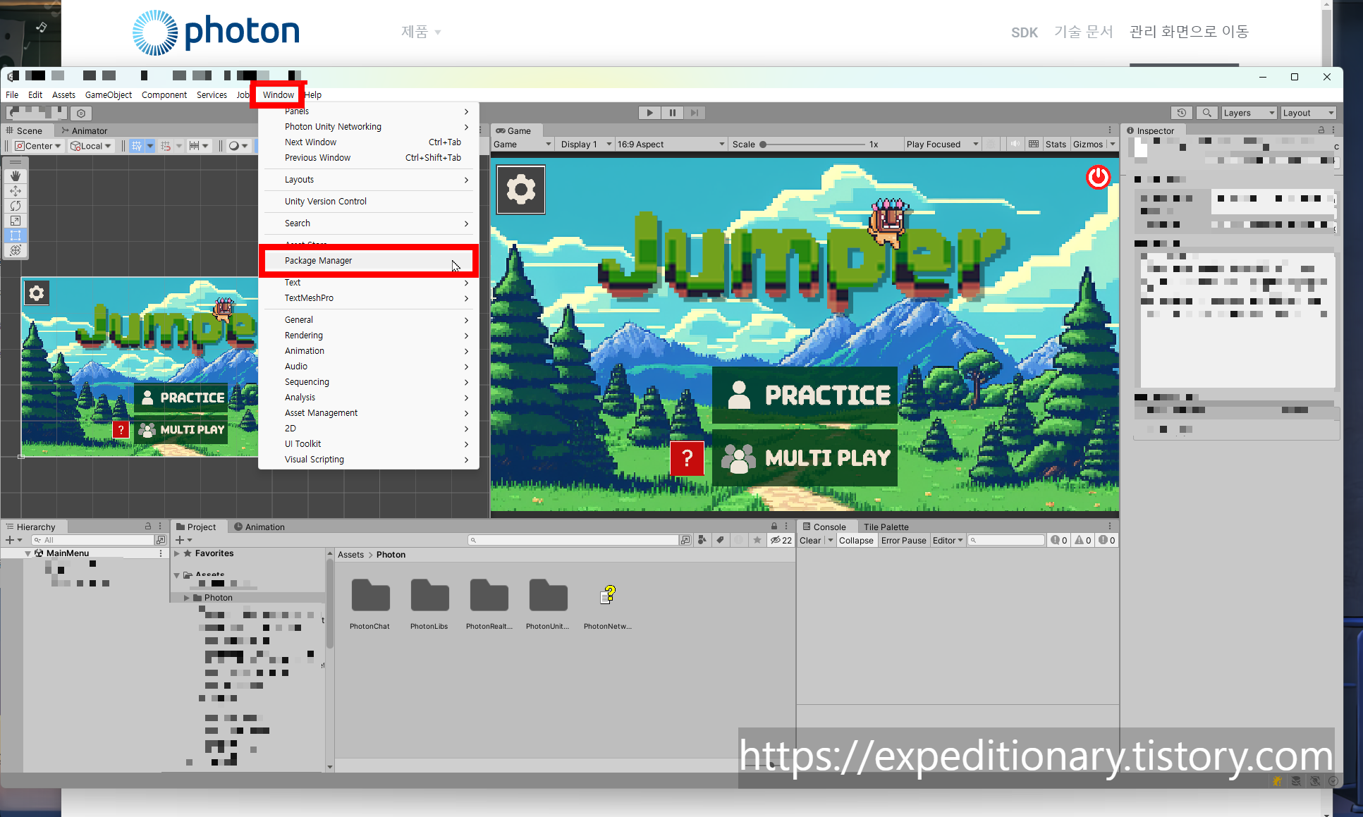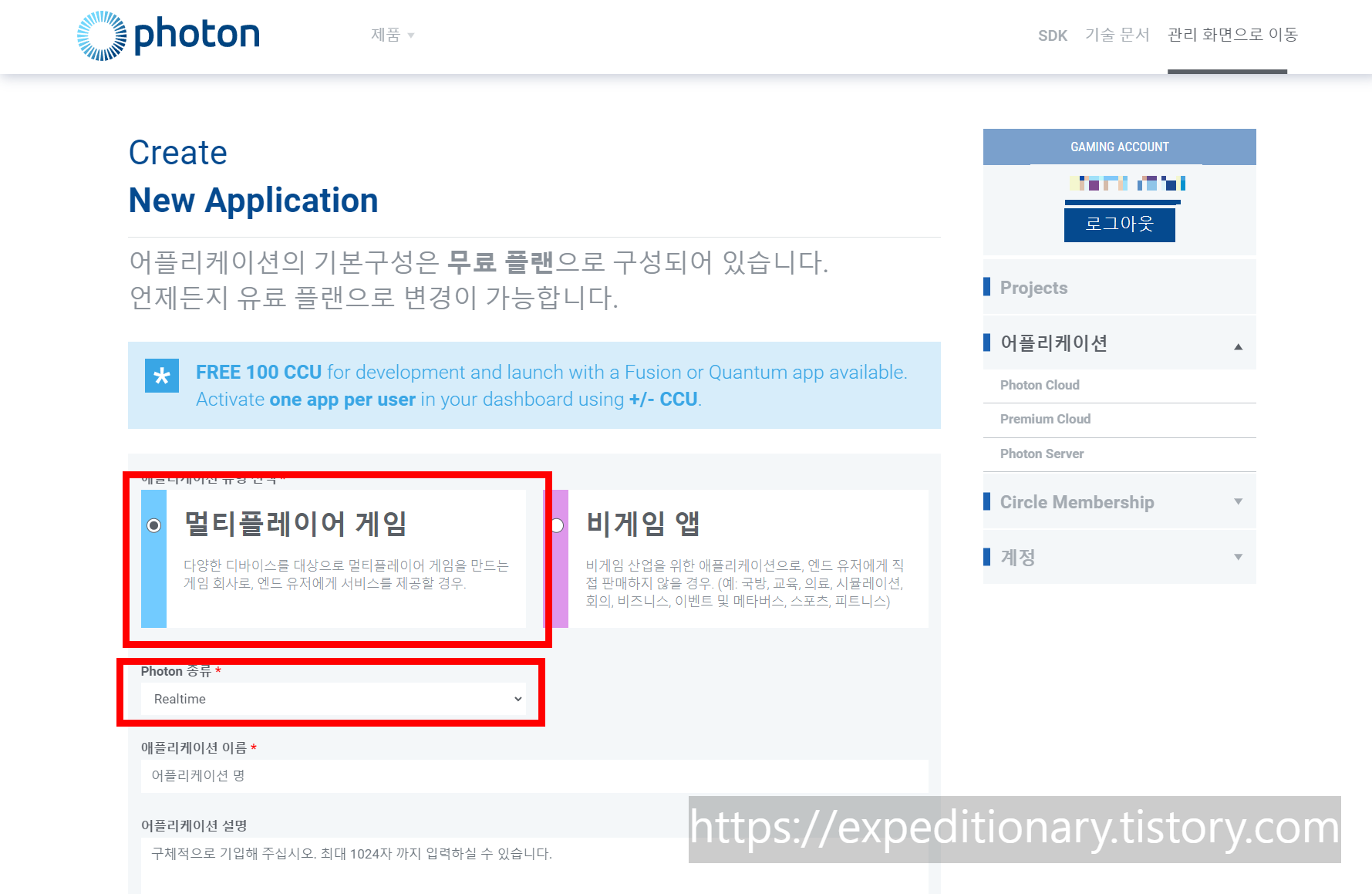 (3) 멀티 플레이어 게임 부분 선택 후 Photon 종류는 Realtime으로 설정.