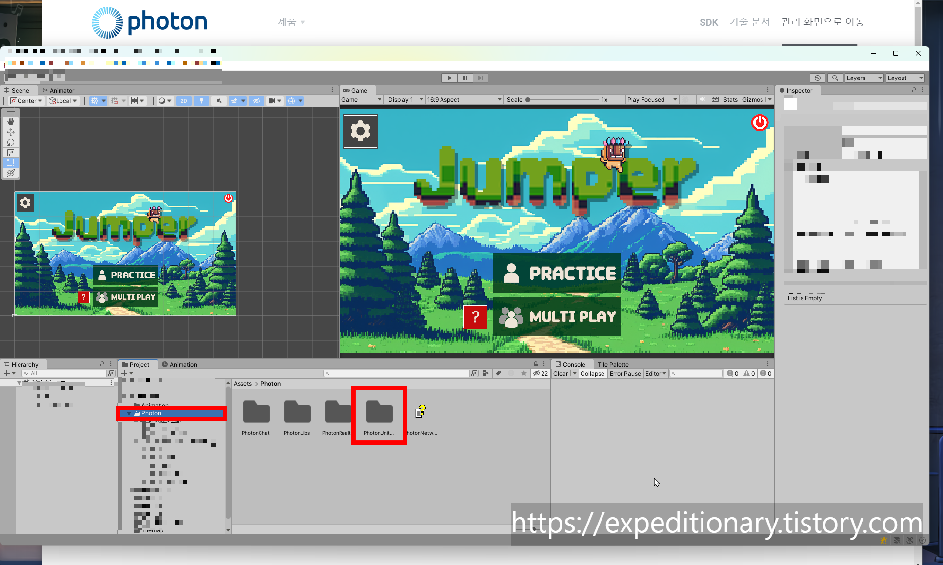 (9) Import 후 Photon 폴더 선택 후 PhotonUnityNetworking 폴더 클릭.