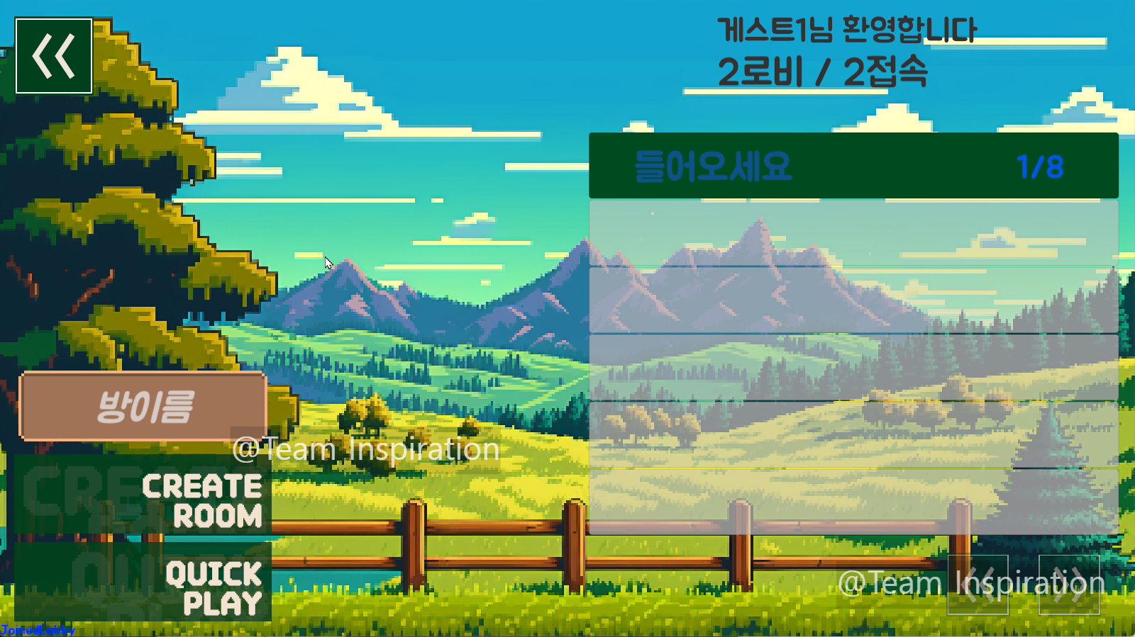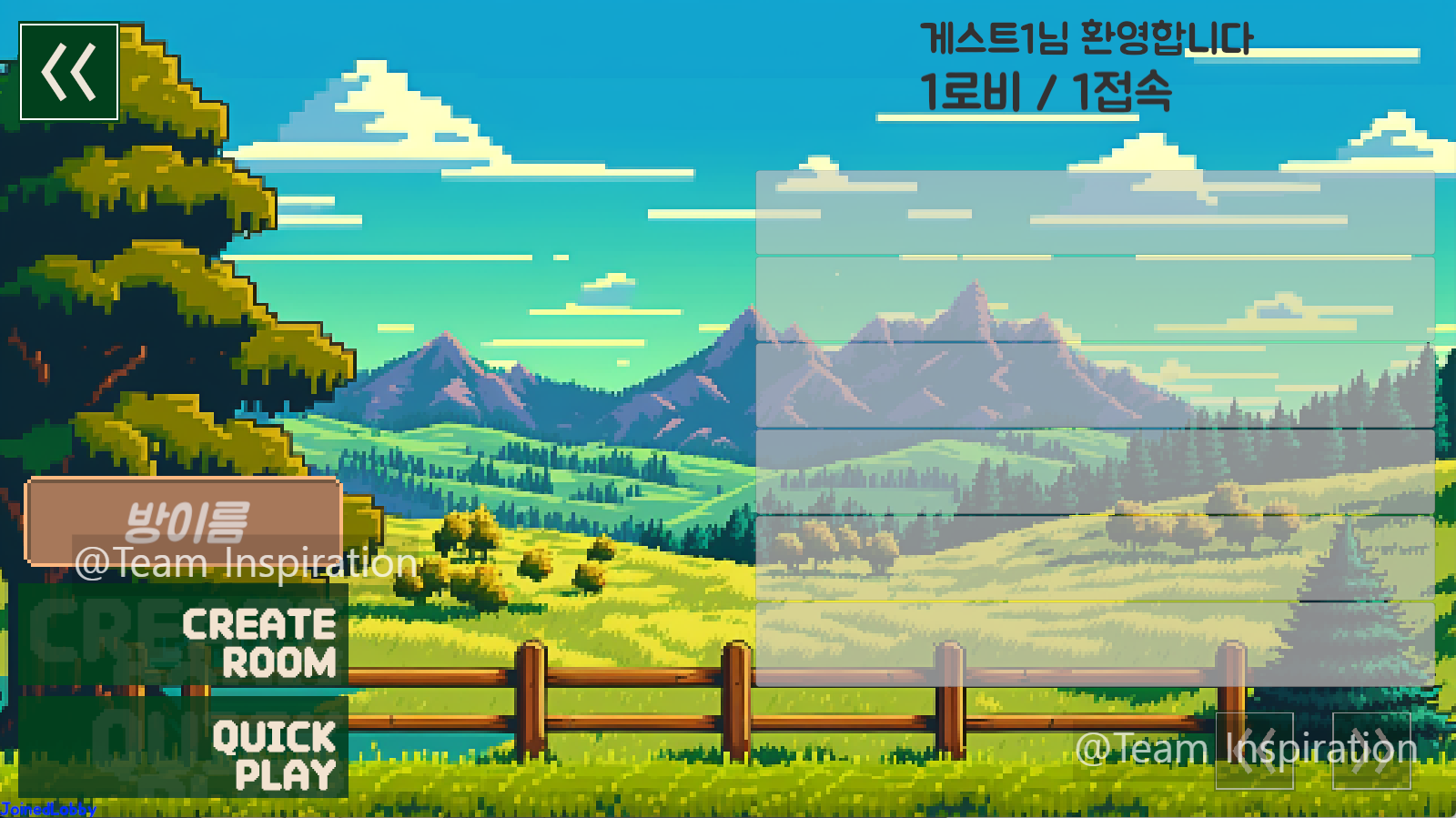 다른 플레이어가 이름을 입력해 방을 만들거나 'Quick Play' 버튼을 눌러 빠른 방생성 또는 참여 가능